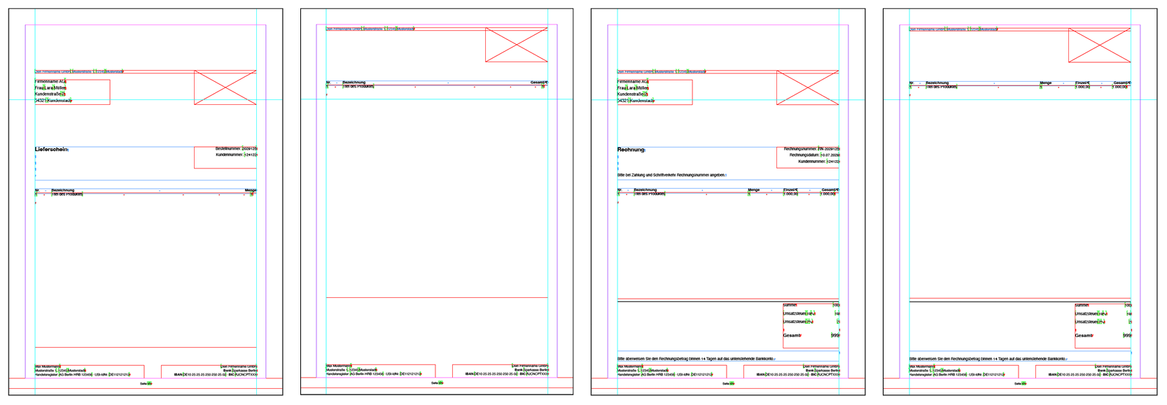 Diese sollten für ein funktionstüchtiges Rechnungs- oder Lieferschein-Template nicht verändert werden.