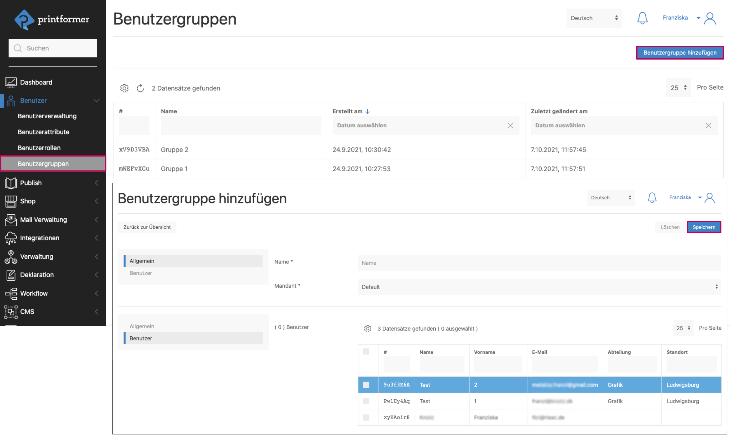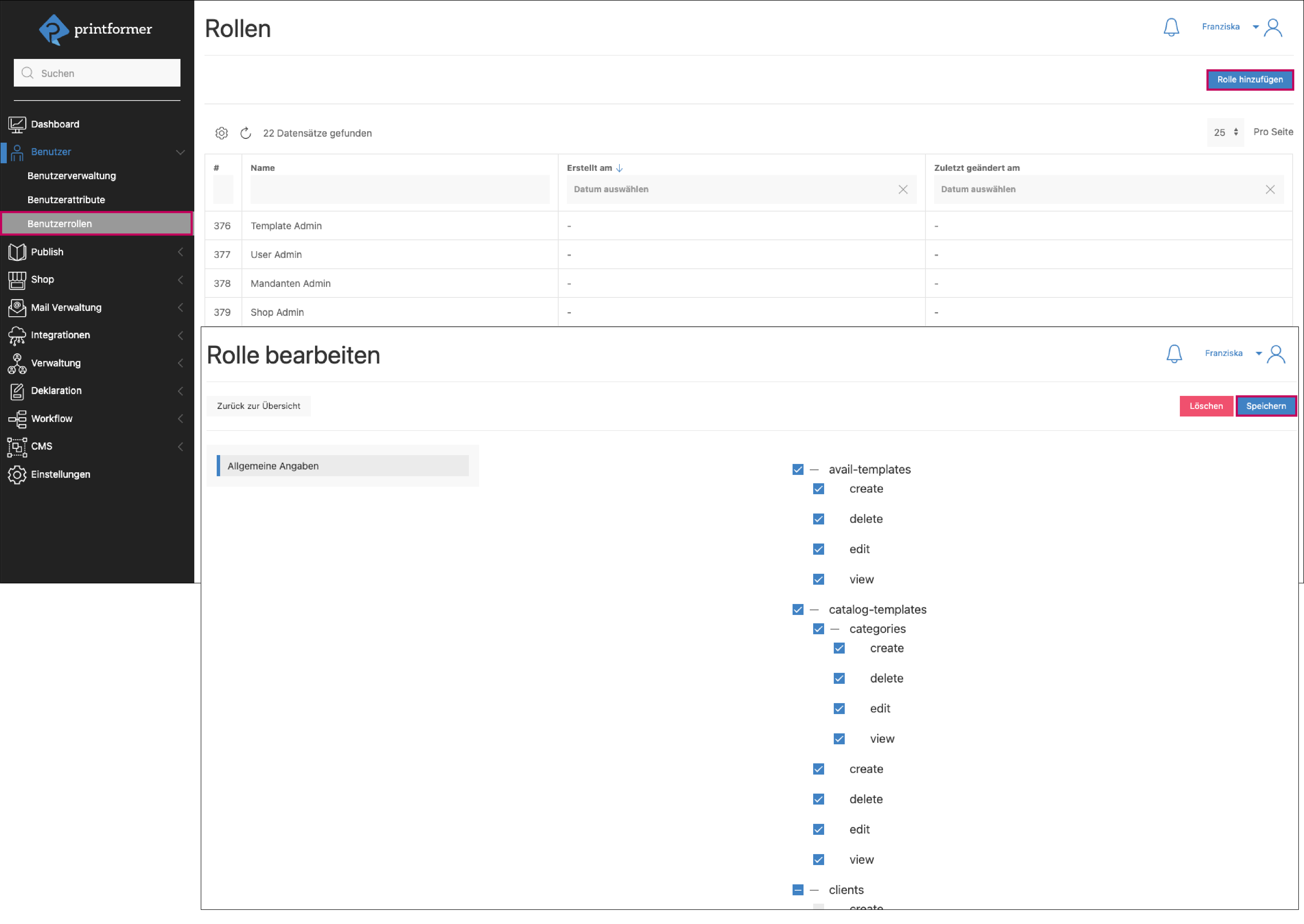 Die Benutzerrolle bestimmt welche printformer Funktionen der Benutzer verwenden und verwalten darf.