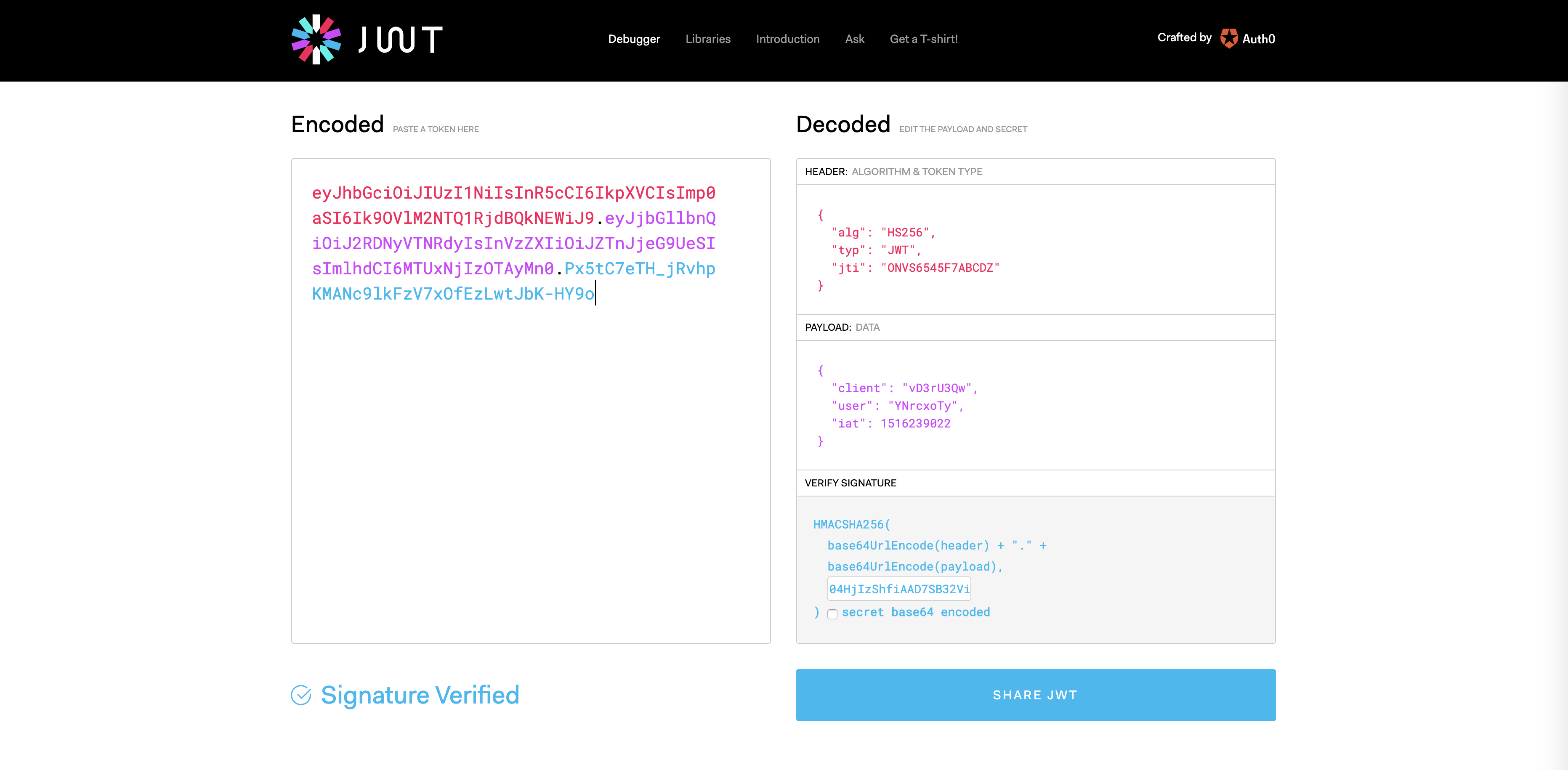 Mittels jwt.io kann dieser überprüft werden, im nächsten Schritt wird damit die Editor-URL entschlüsselt, verifiziert und generiert.