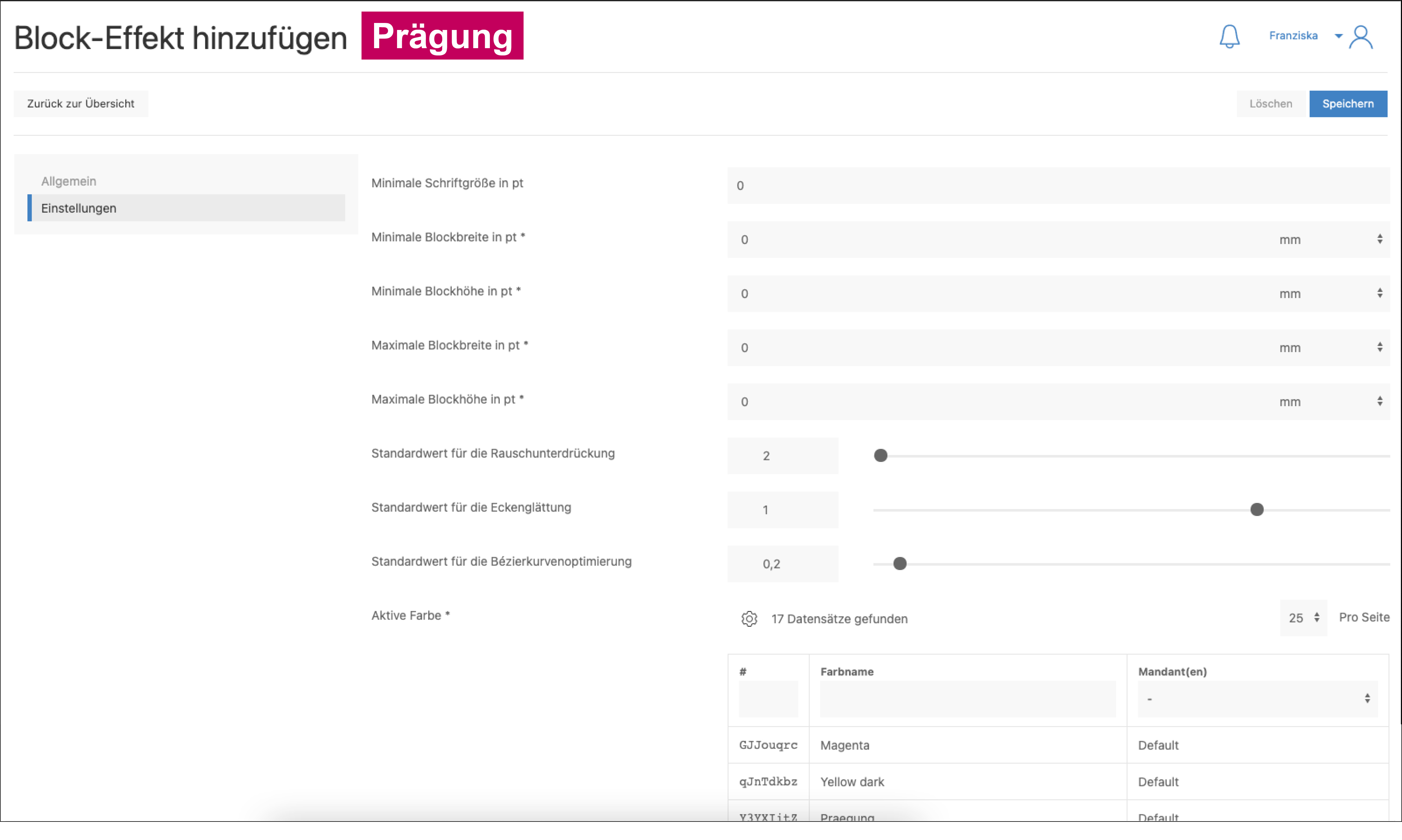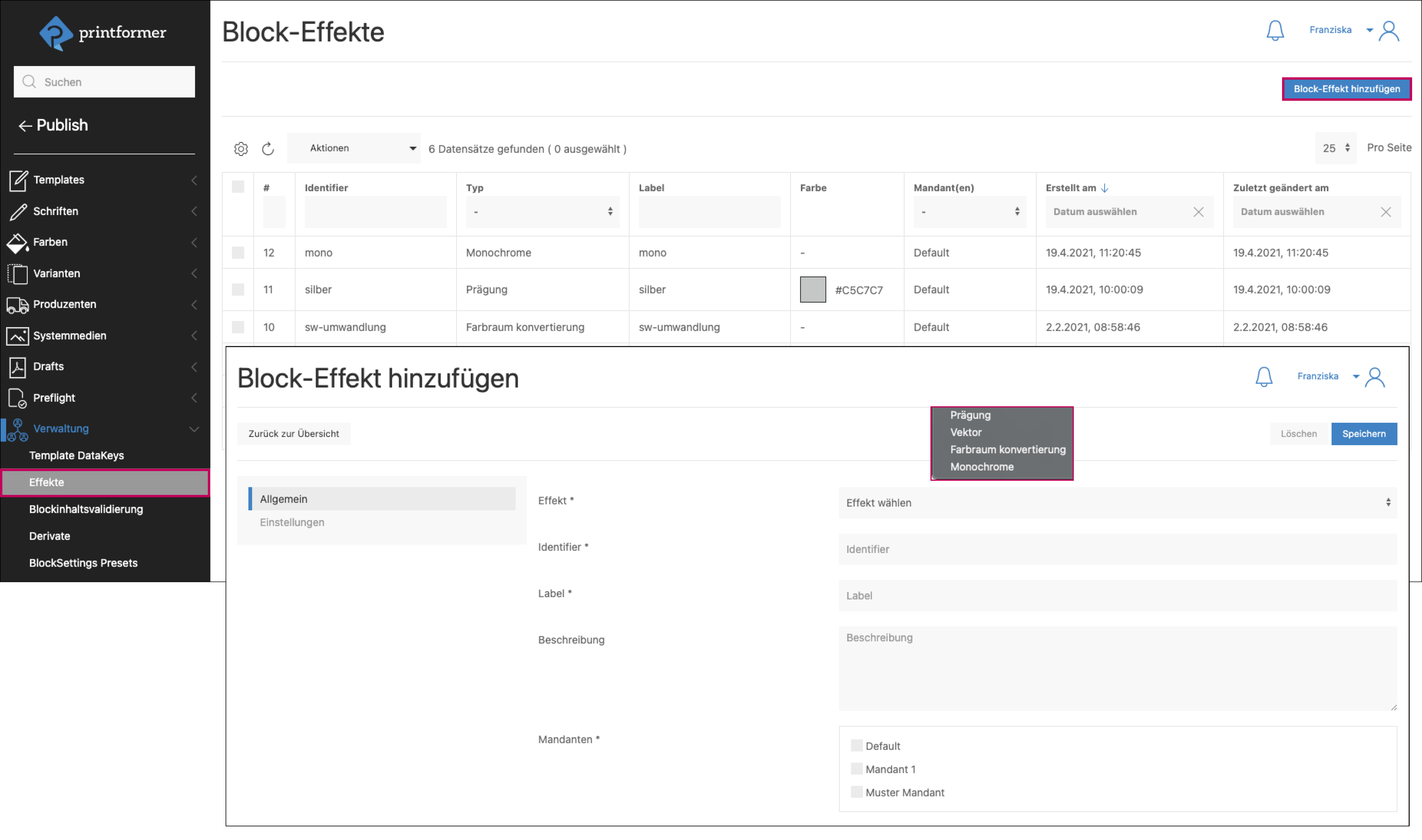 Soll in einem Template ein einheitlicher Effekt auf alle Blöcke (Texte oder Bilder) angewendet werden, kann dieser dem Template über ein Preset zugewiesen werden. Auch eine system- oder mandantenübergreifende Zuweisung ist möglich – beispielsweise eine generelle CMYK-Konvertierung aller Bilder im Editor.