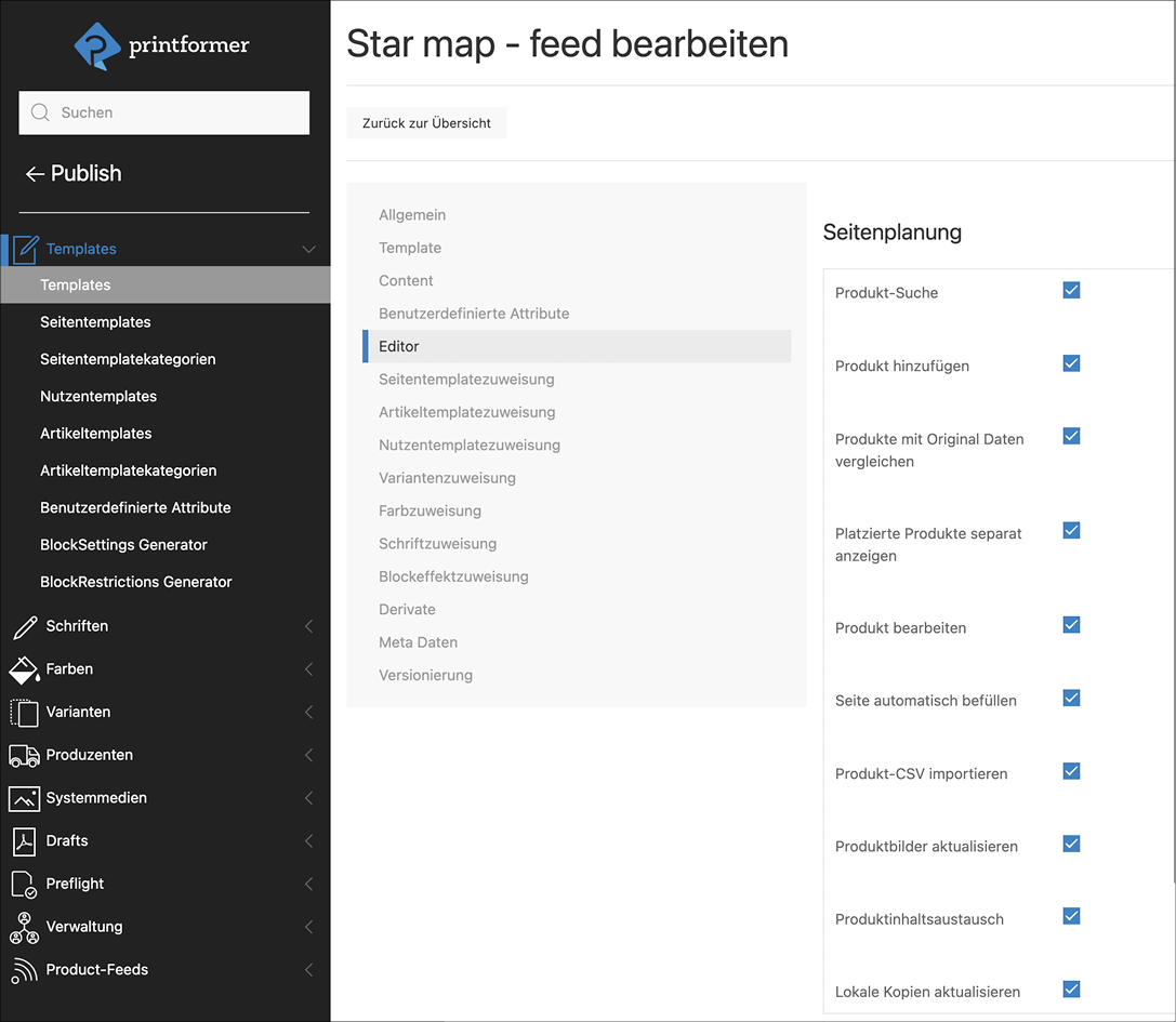 Alternativ kann zum Testen der Feed beim Öffnen des Templates aus der Admin die Checkbox Seitenplanung erzeugen aktiviert werden: