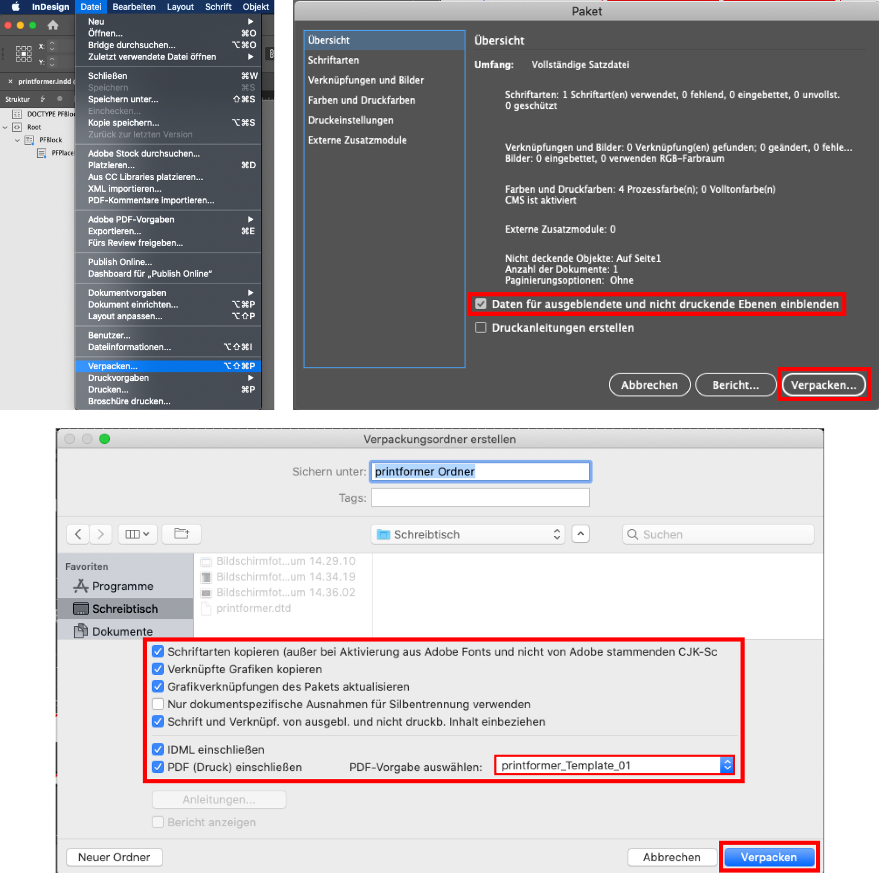 Die in den Screenshots verwendeten Einstellungen sind keine generellen Vorgaben sondern Hinweise welche Bereiche für die PDF-Settings wichtig sind.