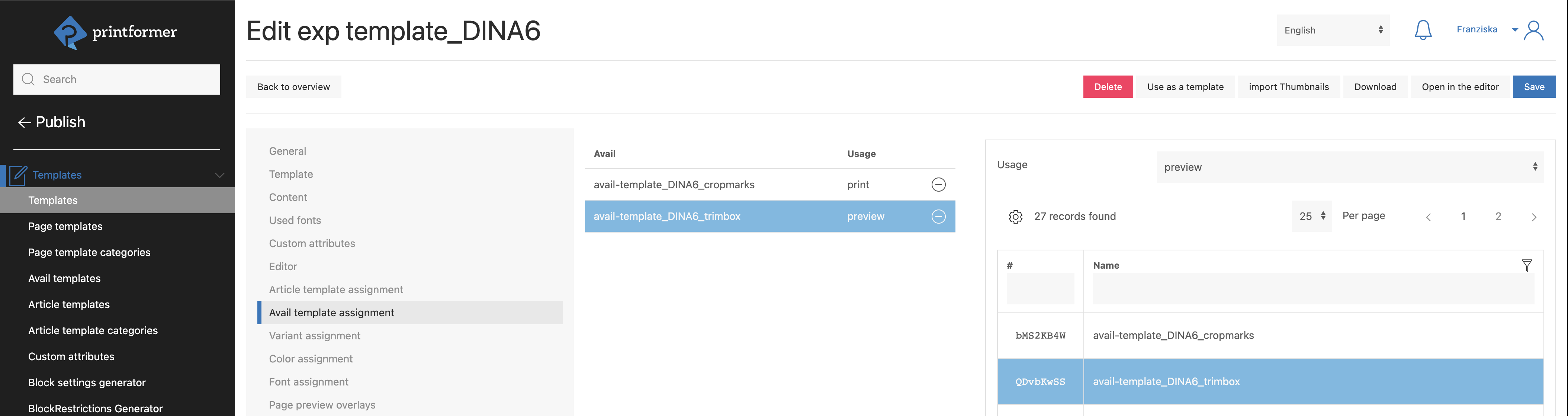 Template and avail template(s) are now packaged and uploaded to the printformer under Templates and Avail templates.
