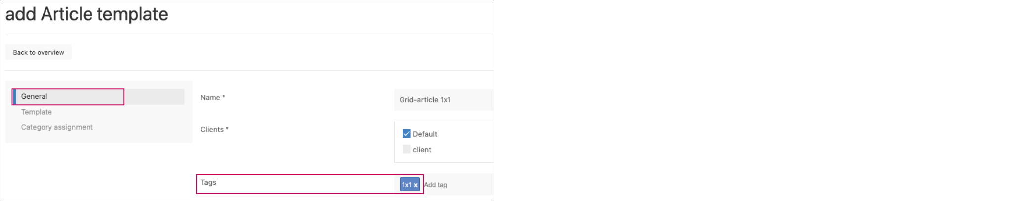 an article template in the format 20x10 must then be marked with the tag 1x1