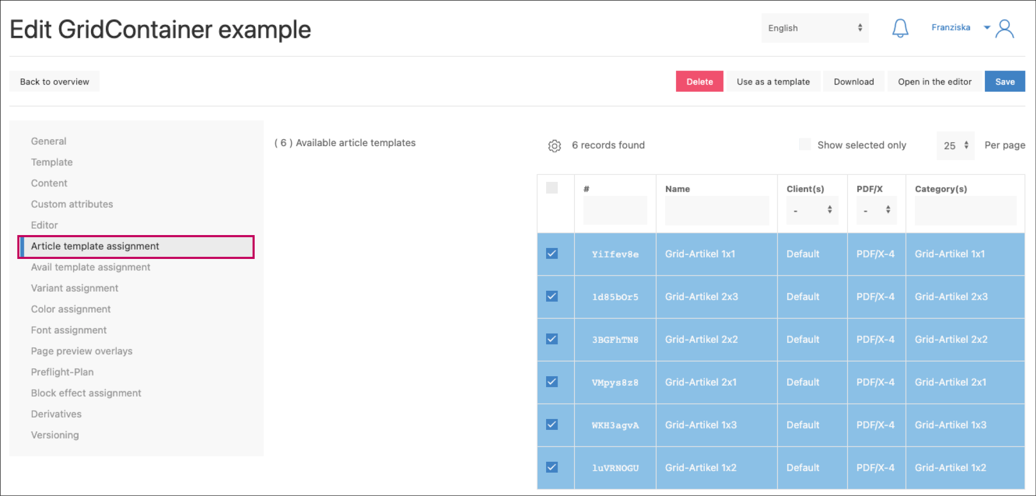 After master and article templates have been configured in printformer, the articles must be assigned to the master.