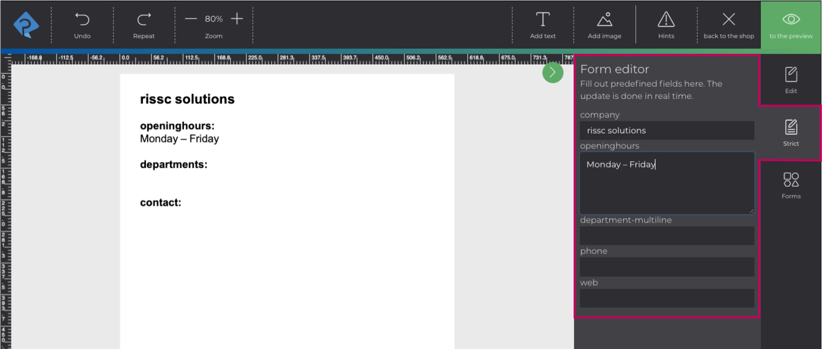 Creating a draft in the printformer editorSave (all changes made must be confirmed)