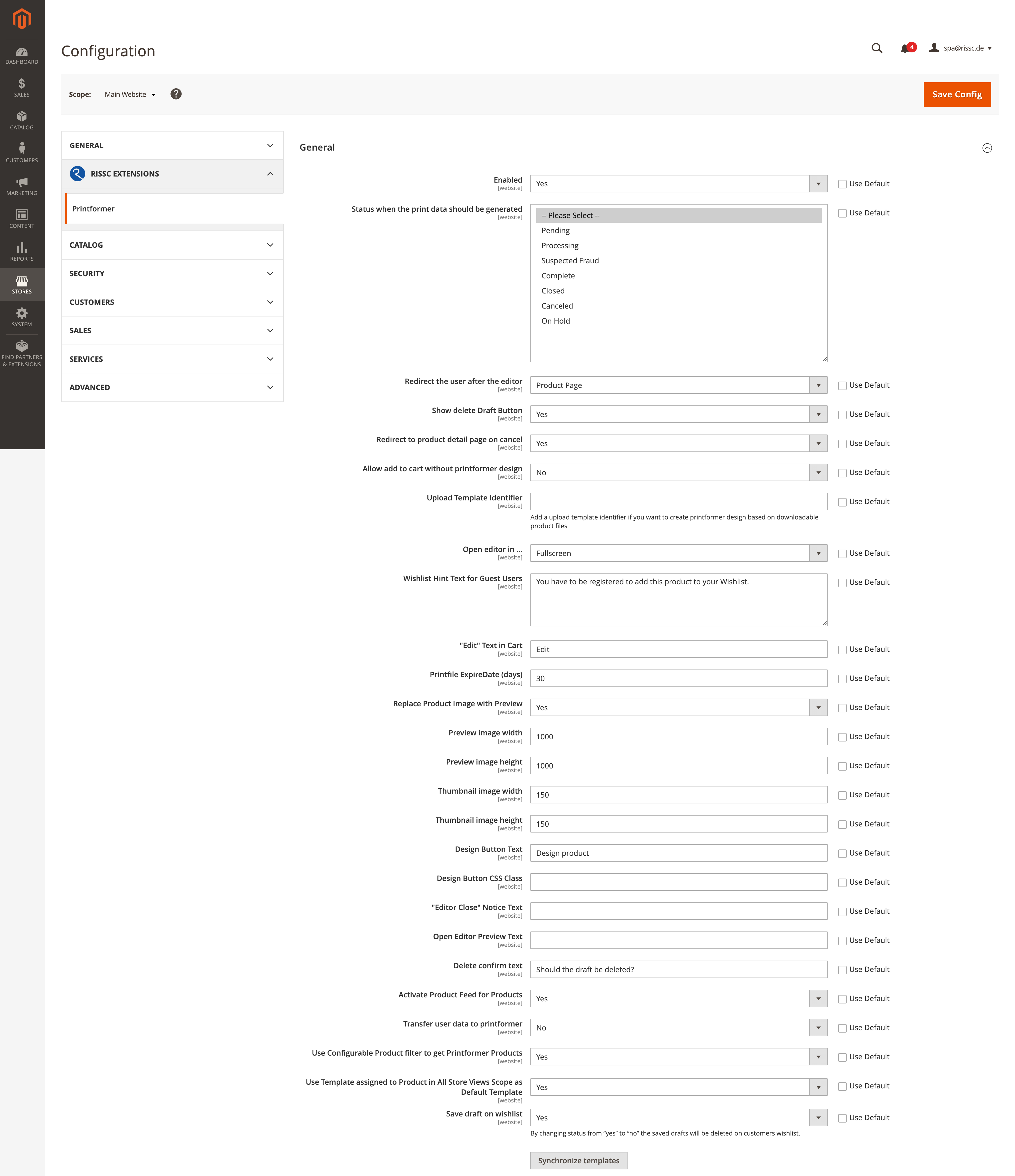 Im Bereich “Allgemein” können grundlegende Einstellungen für die Printformer Extension vorgenommen werden:
