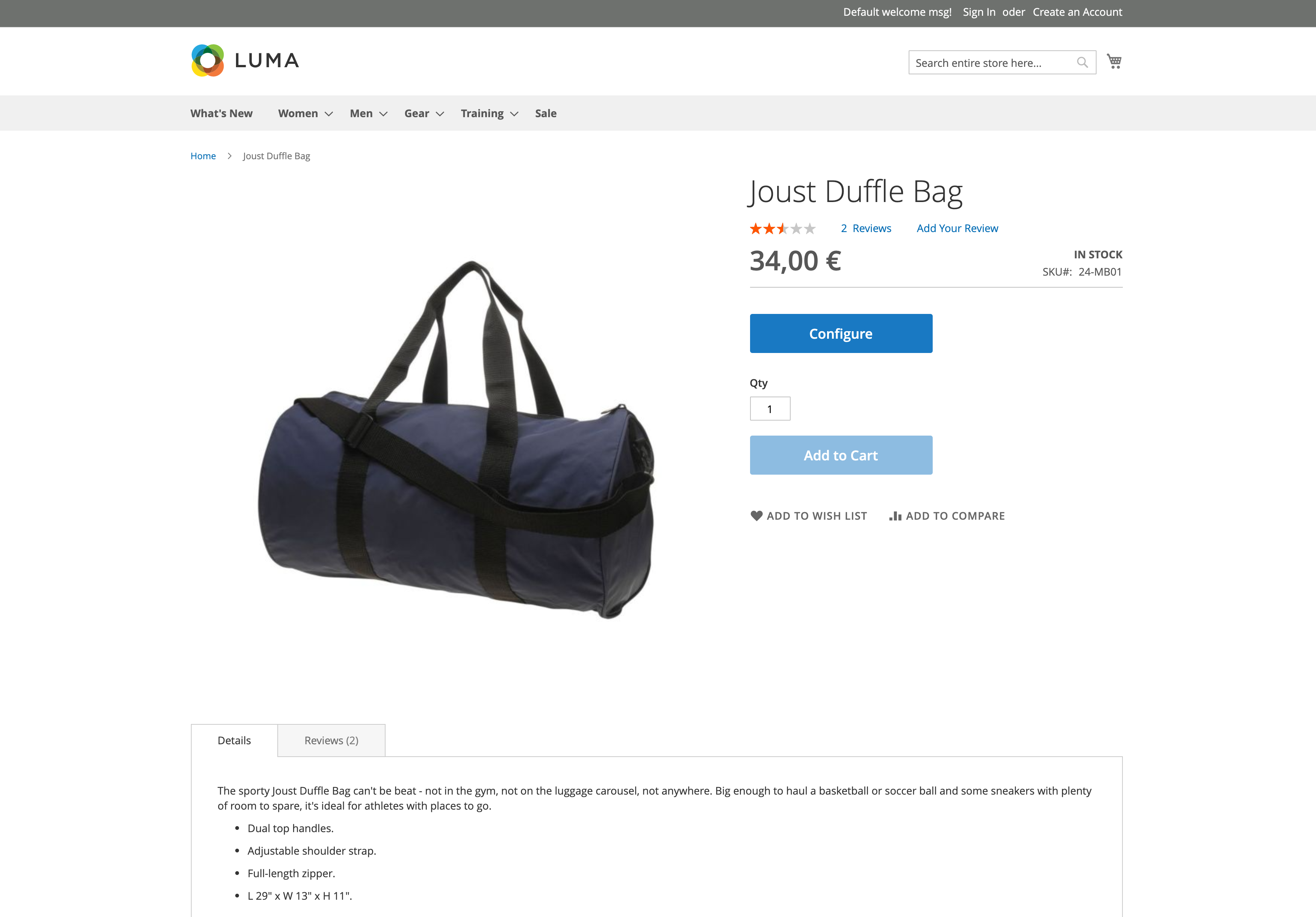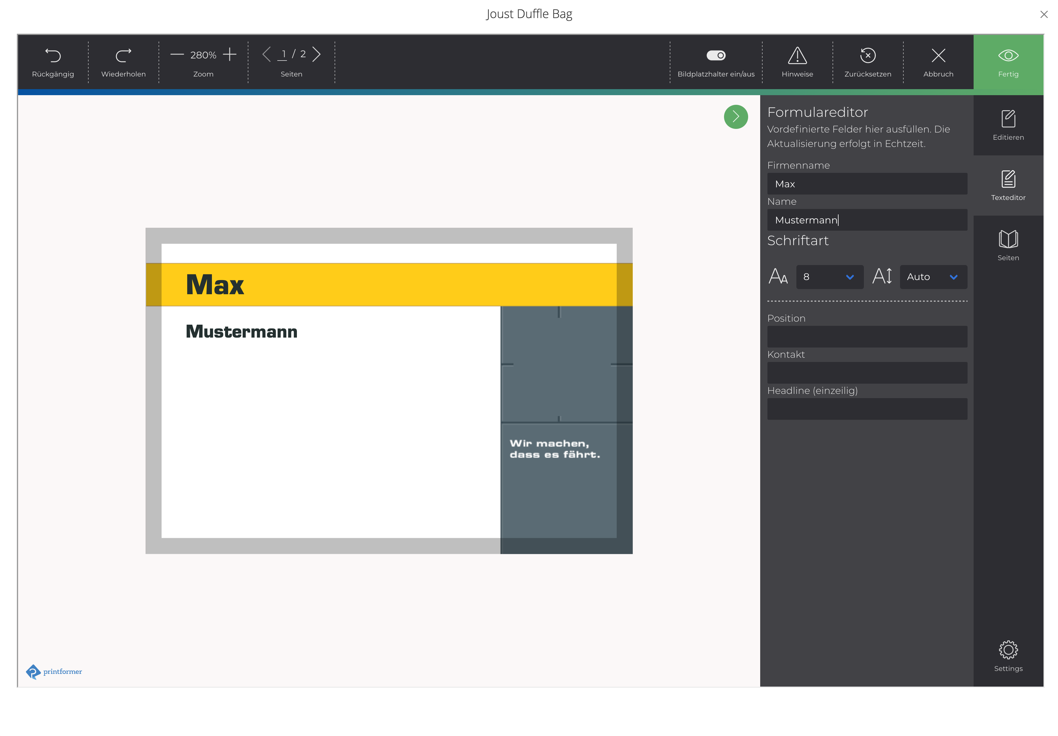 Auf der Produktseite sehen Sie jetzt einen Configure Button der den printformer öffnet