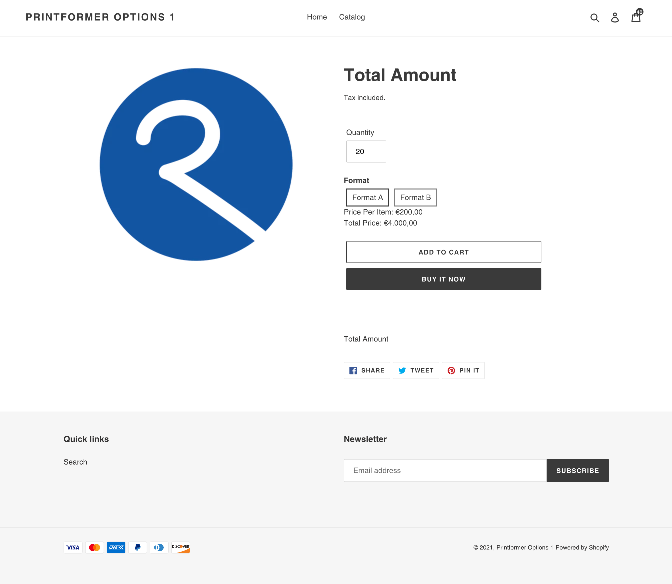 Um den Pries pro Stück und den Gesamtpreis auf der Produktseite anzuzeigen, kann die Einstellung “Display Total Amount” aktiviert werden.