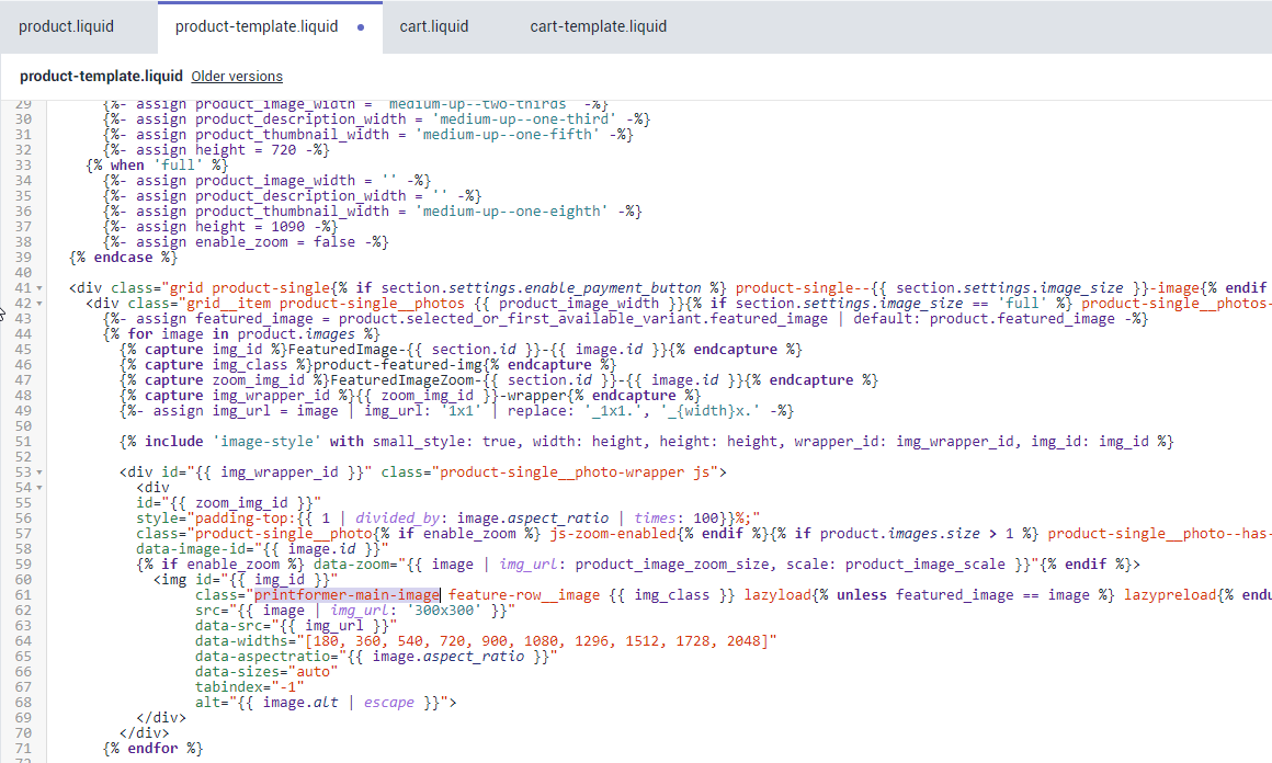 Find main product image and attach additional css class " printformer-main-image "