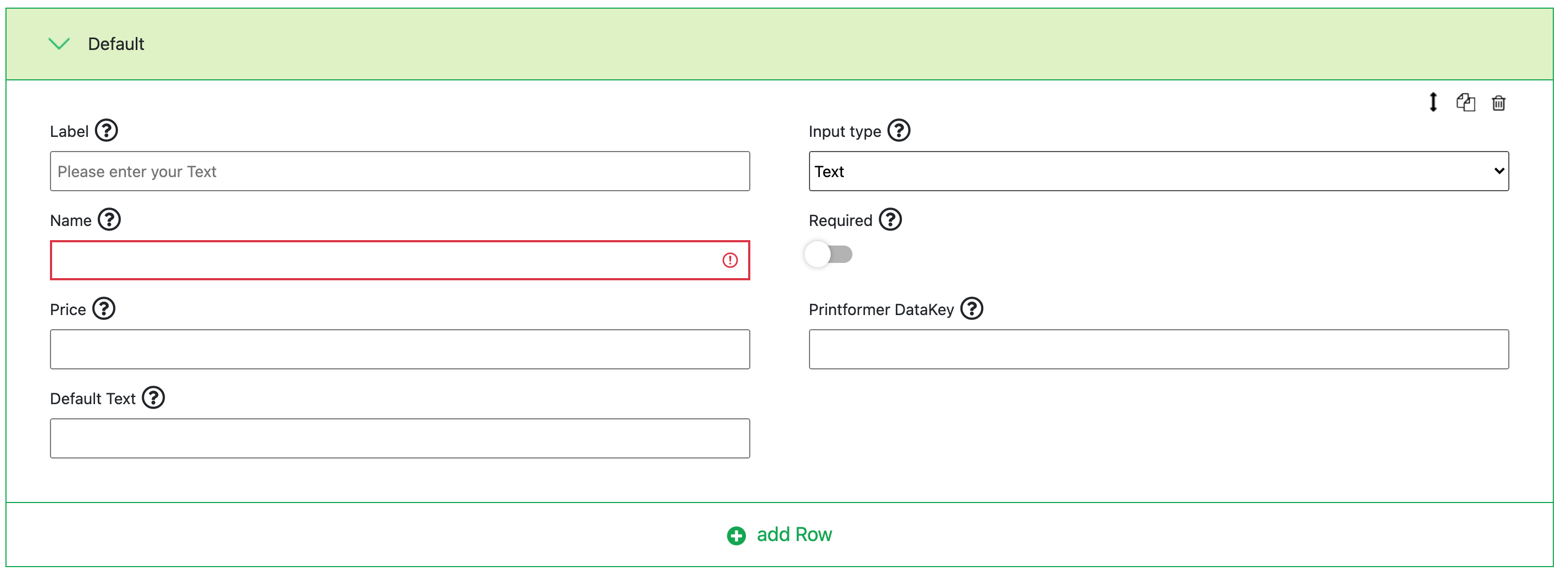 Mithilfe von “add Row” wird eine neue Option hinzugefügt: