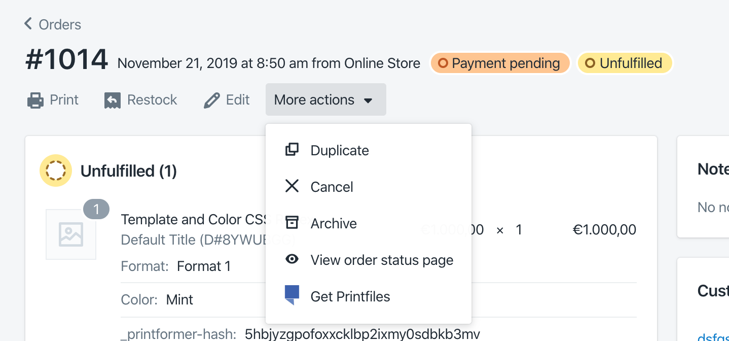 List orders from shopify in printformer App to download prntfiles after order have been placed