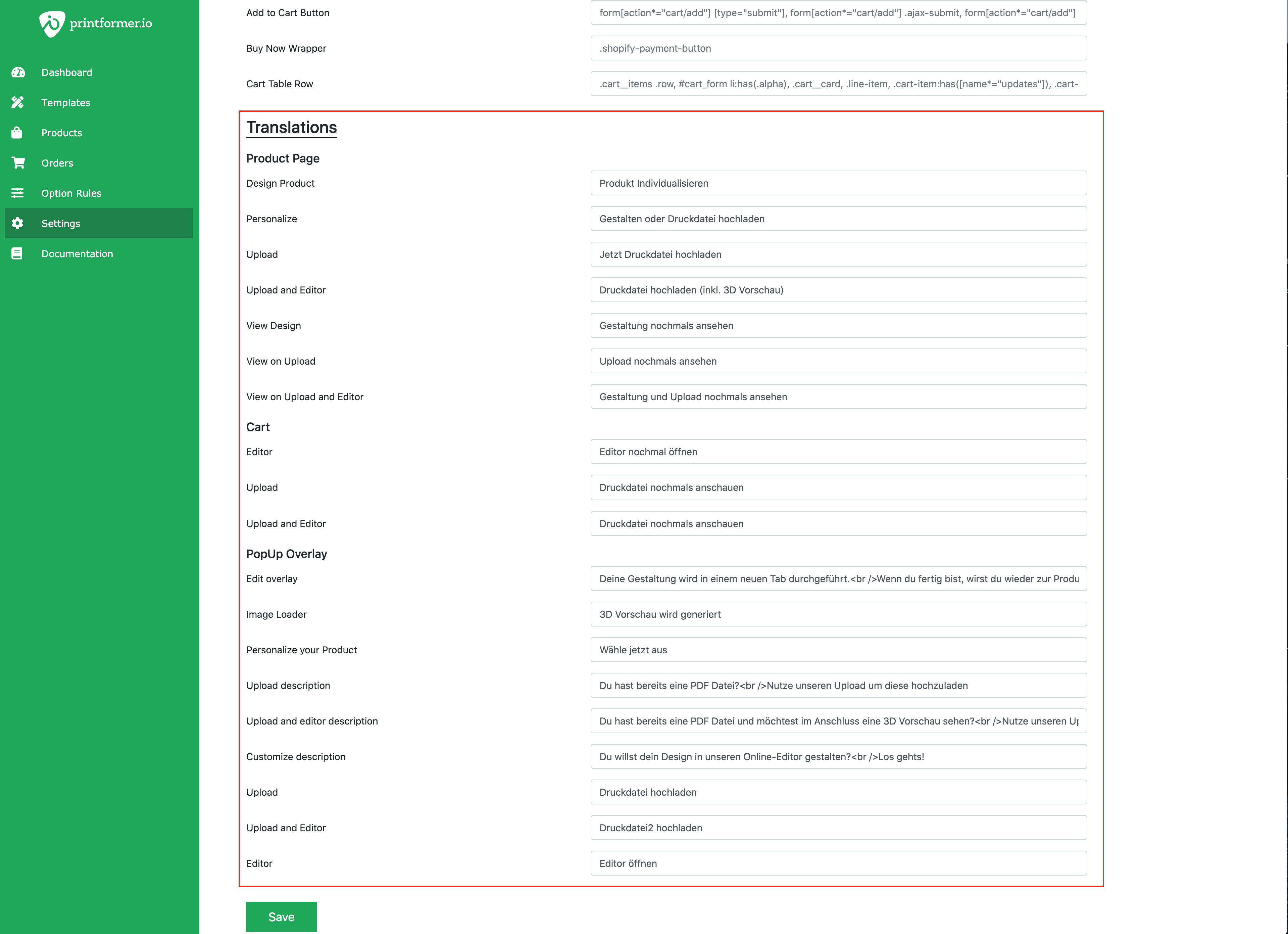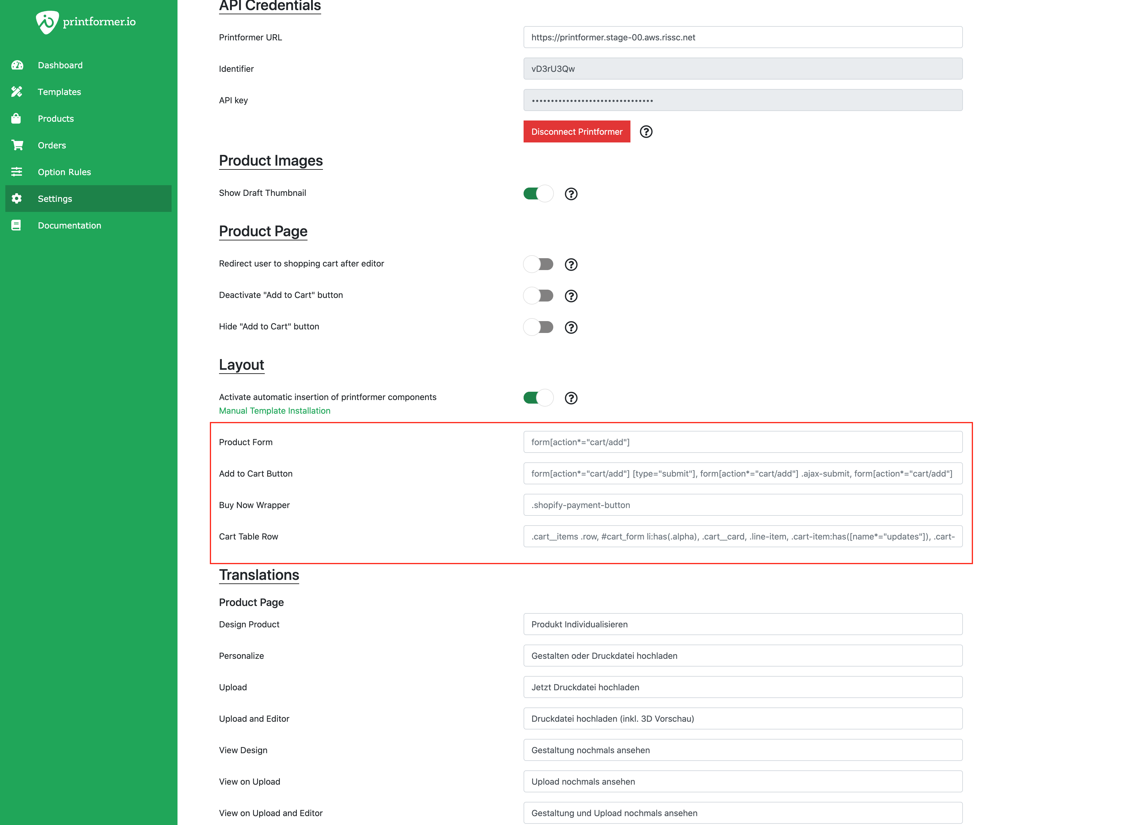 Possibility to deactivate automatic insertion of printformer components in your shopify shop, if you use not supported designs. Please follow the following instructions here