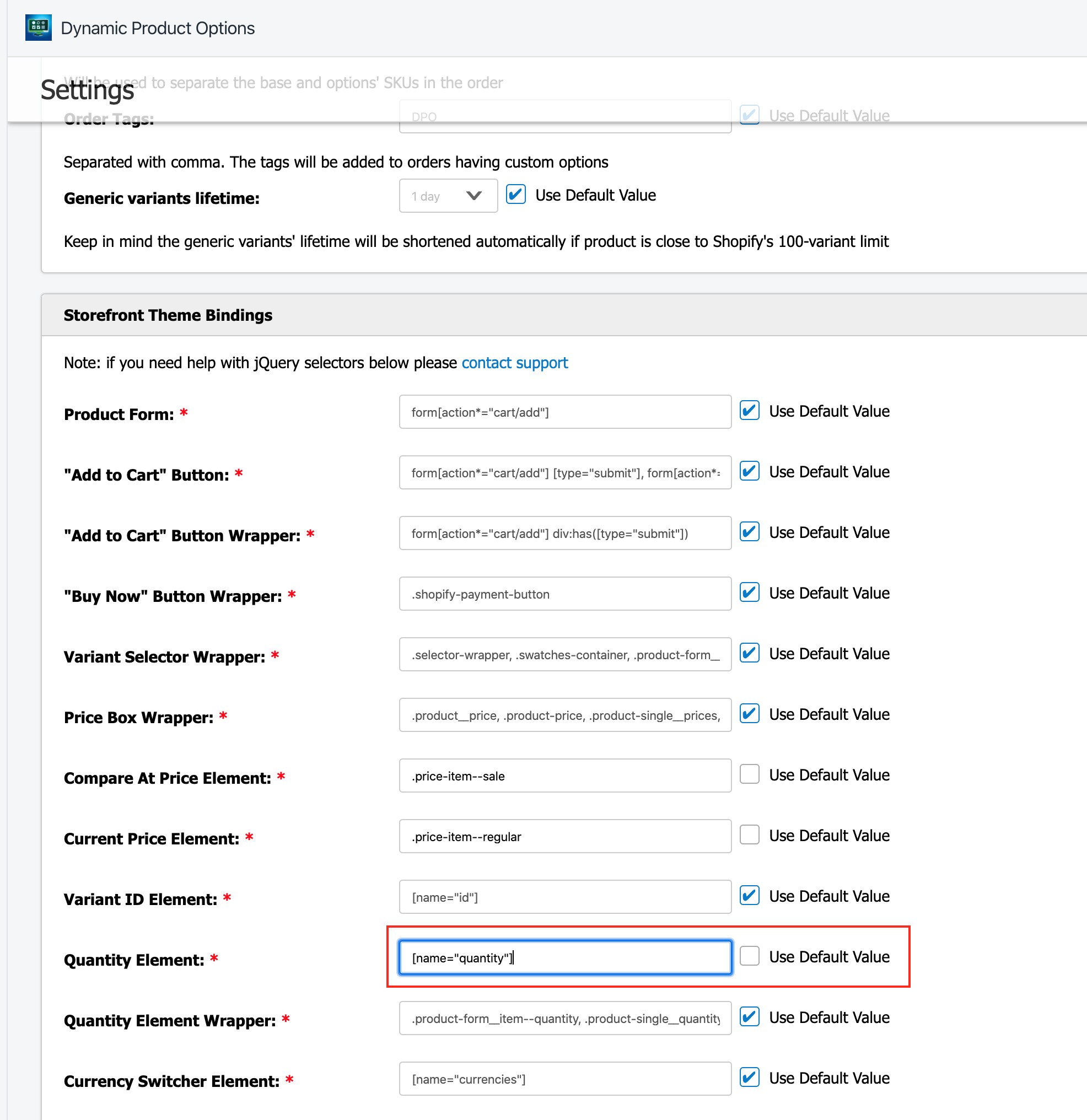 Change CSS Selektor when you use ITORIS Dynamic Product Options (not required)