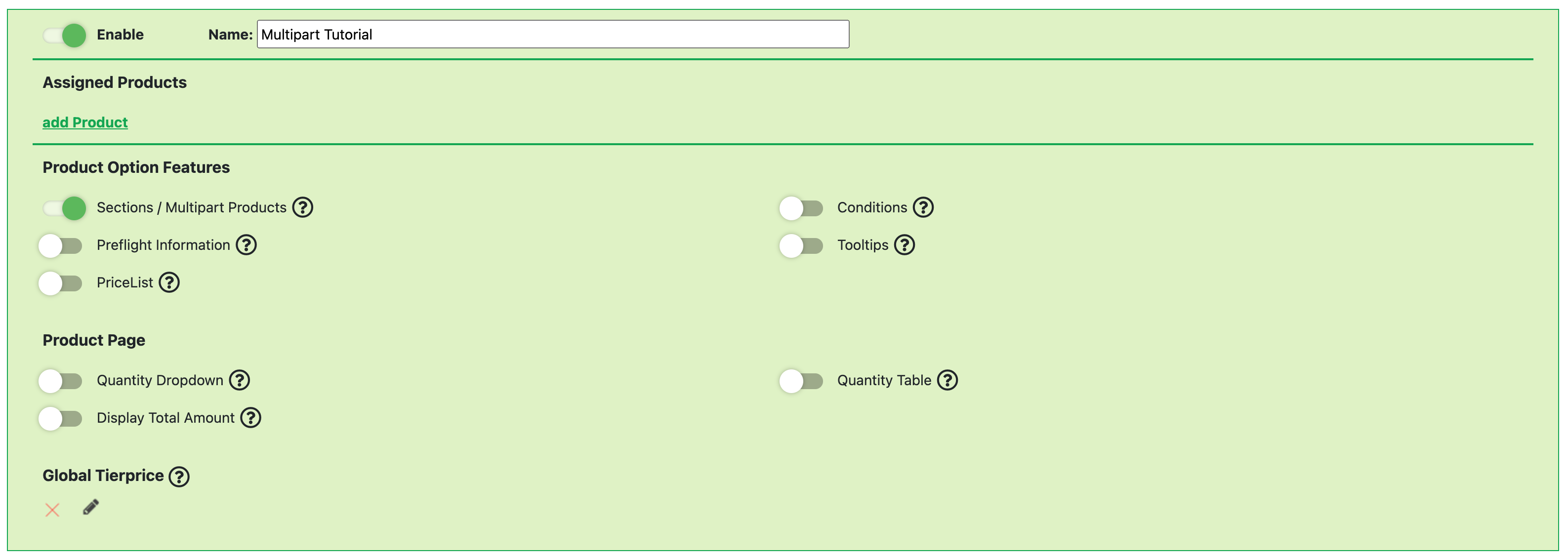 Sections / Multipart Products